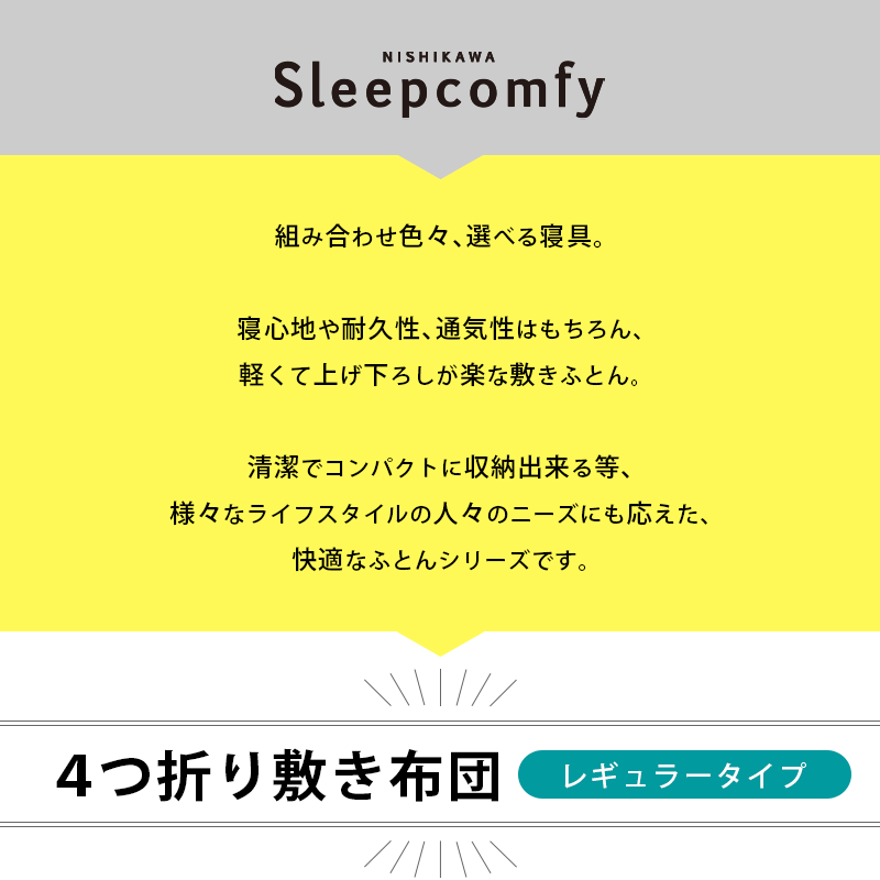 西川 敷布団 シングル Sleepcomfy SY0510 レギュラータイプ4つ折り敷きふとん 寝心地ふつうタイプ 軽量コンパクト 四つ折り 敷き布団 100×210cm ポイント10倍 中型便 あす楽対応