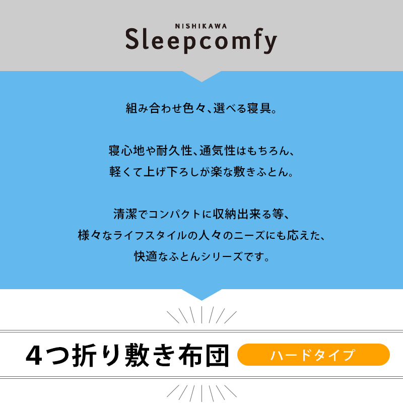 東京西川 敷布団 シングル Sleepcomfy SY0510 ハードタイプ4つ折り敷きふとん 寝心地しっかりタイプ 軽量 コンパクト 四つ折り 敷き布団 100×210cm ポイント10倍 中型便 あす楽対応