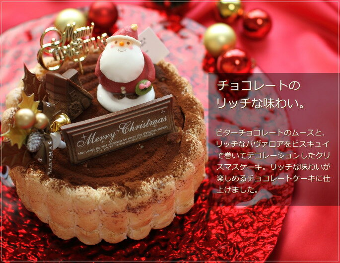 \クリスマスケーキ特集!12/16・9時まで予約受付中!/チョコレートのリッチな味わいが楽しめるシャルロットケーキ。