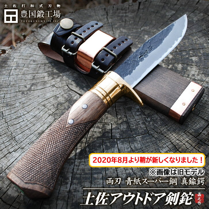 《予約注文》※【2020/8/27より 木鞘オイルステン鞘に変更(銅板無しとなります)】土佐アウトドア剣鉈 120mm 4寸 両刃 青紙二号鋼 和鋼 黒槌 ステンレスツバ輪 チェッカー 樫柄 ナイフ ブッシュクラフト キャンプ 国産【商品管理番号:tautodoa_cp-911】